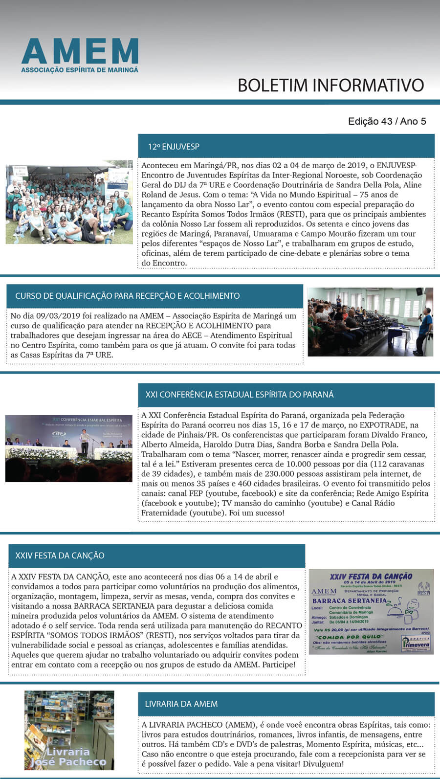 Boletim Informativo 43 – Março 201915/03/2019AMEMBoletim Informativo0 ComentáriosCompartilhe Twitter Facebook LinkedIn AMEMOutros Posts Boletim Informativo Edição 53/Janeiro 2020 Boletim Informativo Edição 52 / Dezembro 2019 Boletim informativo Edição 50 / Outubro 2019Comments (0)Deixe um comentário Cancelar respostaO seu endereço de e-mail não será publicado. Campos obrigatórios são marcados com *Nome * E-mail * Site Comentário * Δ